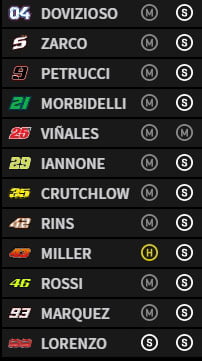Dovizioso, Vinales, Petrucci (Voir ici)