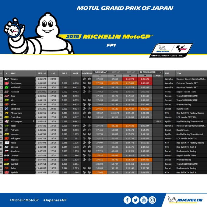 The Spaniard pips @sepangracing duo @FabioQ20 and @FrankyMorbido12 as the closing minutes of FP1 resemble a qualifying session! 🏁#JapaneseGP 🇯🇵 pic.twitter.com/CuWiBQjuq4