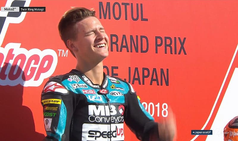 A peine descendu de sa Speed Up après avoir remporté le Grand Prix du Japon 2018, c’est un Fabio Quartararo forcément très heureux et très ému de cette deuxième victoire dans la catégorie intermédiaire qui s’est confié au micro du site officiel MotoGP.com.