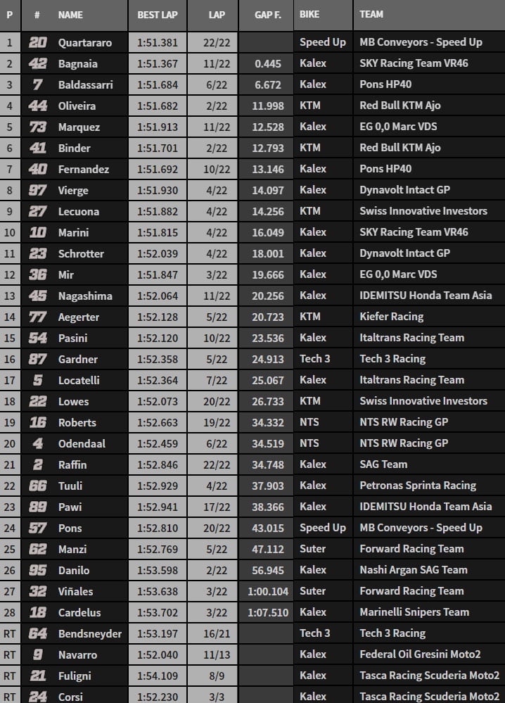 Grand Prix du Japon Motegi Moto2 Classement de la course :