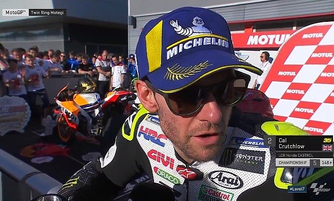A peine descendu de sa Honda RC213V usine du team LCR Honda après avoir remporté la 2e place du Grand Prix du Japon, c’est un Cal Crutchlow sûr de lui qui s’est confié au micro du site officiel MotoGP.com.
