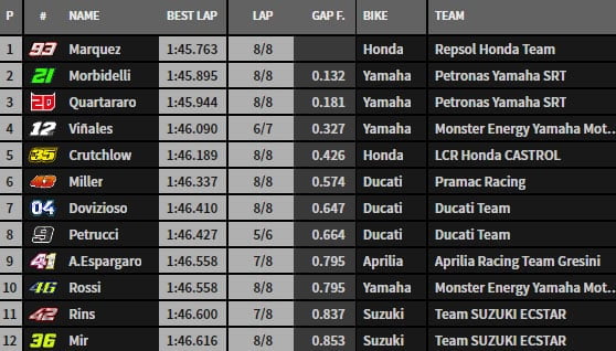 Classement Qualification 1 du Grand Prix MotoGP du Japon :