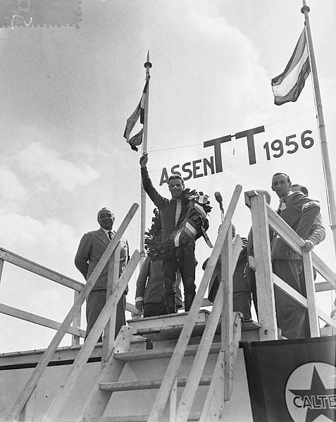 Ubbiali à Assen, pour le TT 1956. Photo : Von Bilsen / Anefo.