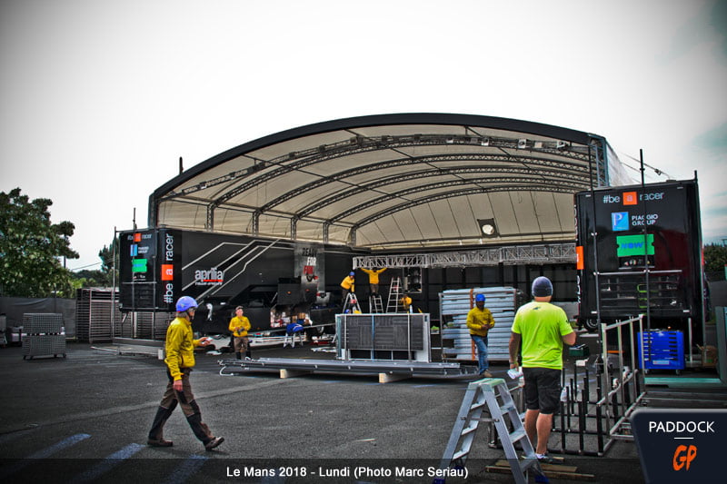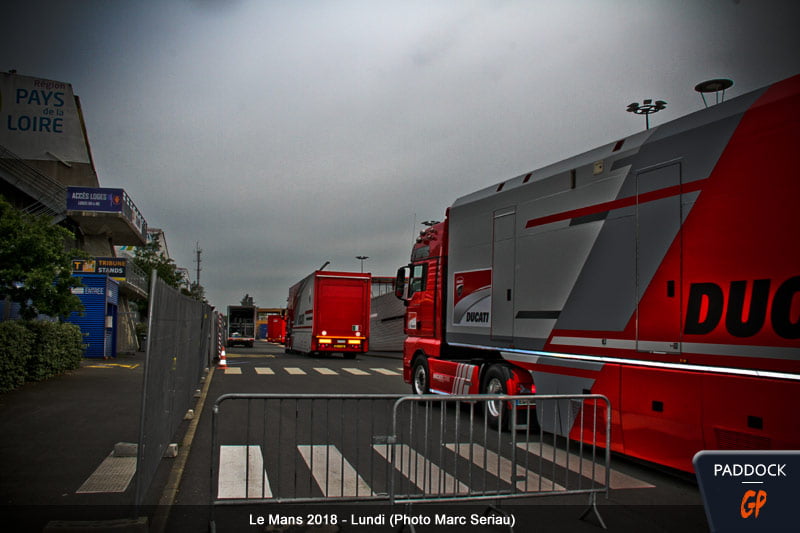 Moto GP Publié le 15 mai 2018 • 06:00 par Marc Sériau HJC Grand Prix de France : Les photos du lundi… La nouvelle ligne de départ, les premières hospitalities qui commencent à s’installer, un soleil bien pâle mais qui ne fera que se renforcer jusqu’à ce week-end, c’était l’ambiance paddock du lundi…