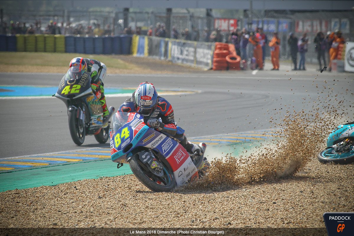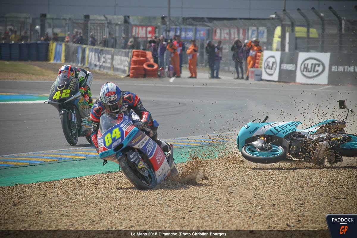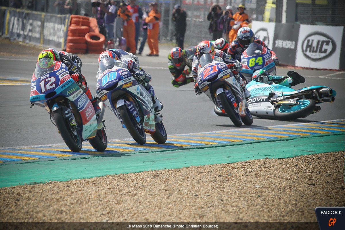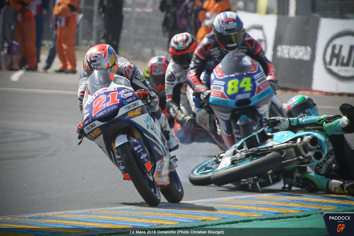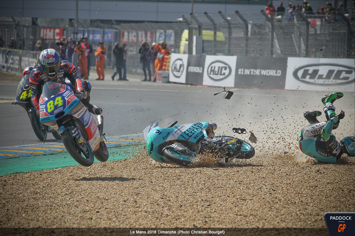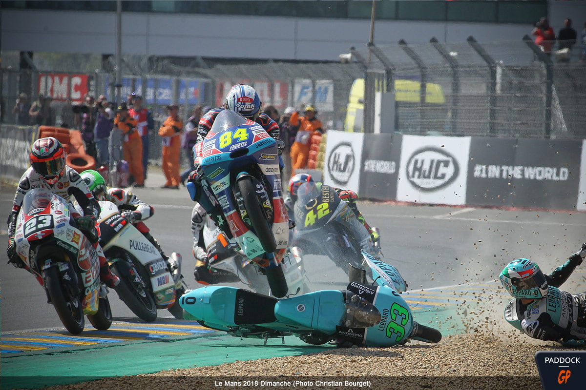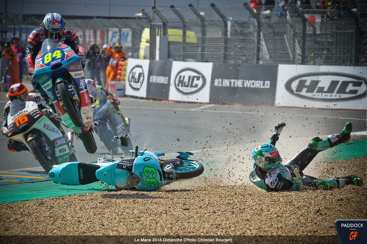 Quand, au 21e tour d’un Grand Prix de France Moto3 qui en comptait 22, l’Italien Enea Bastianini du team Leopard Racing perd le contrôle de sa Honda NSF 250 RW, cela aurait pu être une simple chute comme les 108 autres survenues le week-end dernier au Mans…