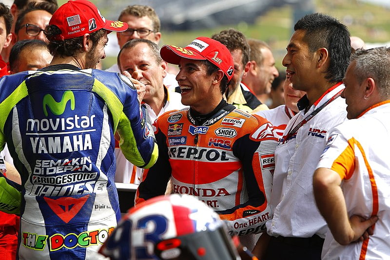 Valentino Rossi, c’est un compétiteur acharné, qui, épée levée, a bataillé contre les plus grands de ce sport. En ayant disputé environ 44% de tous les Grands Prix de l’histoire, nul doute que d’autres légendes ont croisé son chemin. Max Biaggi, Sete Gibernau, Loris Capirossi, Nicky Hayden, Casey Stoner, Dani Pedrosa, Jorge Lorenzo, Dani Pedrosa et Marc Márquez pour ne citer qu’eux. C’est autant de joutes légendaires, de passes d’armes fantastiques et de souvenirs indescriptibles.
