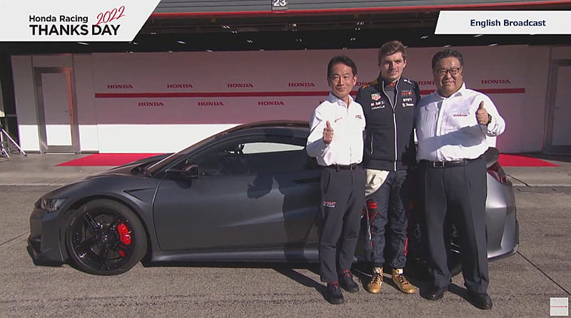 Il s’ensuivit une démonstration de karts électriques réservée aux pilote de F1, une brève démonstration des voitures de course Honda (hors F1), un passage des pilotes devant les tribunes en autobus découvert, une mise à l’honneur de Max Verstappen qui s’est vu offrir une NSX type S conduite à droite, puis, à 6h12 dans la vidéo, un bref tour du circuit par Marc Márquez et Takaaki Nakagami sur leurs machines de course.