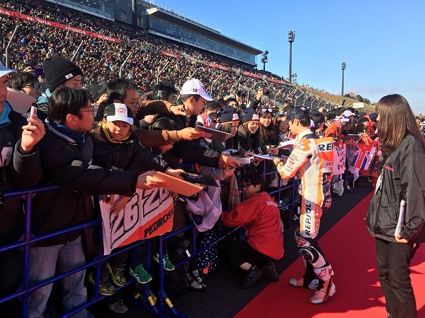 Marc Márquez : « J’aime beaucoup cet événement, car à chaque édition nous en profitons toujours plus. Tout est parfaitement organisé et nous avons la possibilité d’essayer différentes voitures et motos. Cette année par exemple, nous avons eu la chance de monter dans une F3. C’était une toute nouvelle expérience pour moi, j’ai beaucoup aimé. Un énorme merci à Honda. C’était également un honneur ce dimanche de pouvoir rouler avec Takuma qui a gagné l’Indy 500 et puis c’est toujours un plaisir d’aller à la rencontre des fans japonais. À chaque fois que nous venons, nous recevons un accueil très chaleureux de leur part. Je suis content d’être là et de célébrer cette belle saison que nous avons encore eu avec eux. Bien sûr le titre pilote était notre principal objectif, mais nous sommes parvenus à décrocher le triplé avec les trophées de meilleur constructeur et de meilleure équipe. C’est ce qui nous donne ce feeling si particulier. »