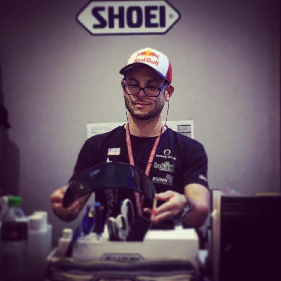 Chez Shoei, c’est Michaël Rivoire qui s’occupe de Marc Marquez, Bradley Smith, Eugene Laverty, Tom Lüthi, Sandro Cortese, Fabio Quartararo, Jules Danilo, etc.