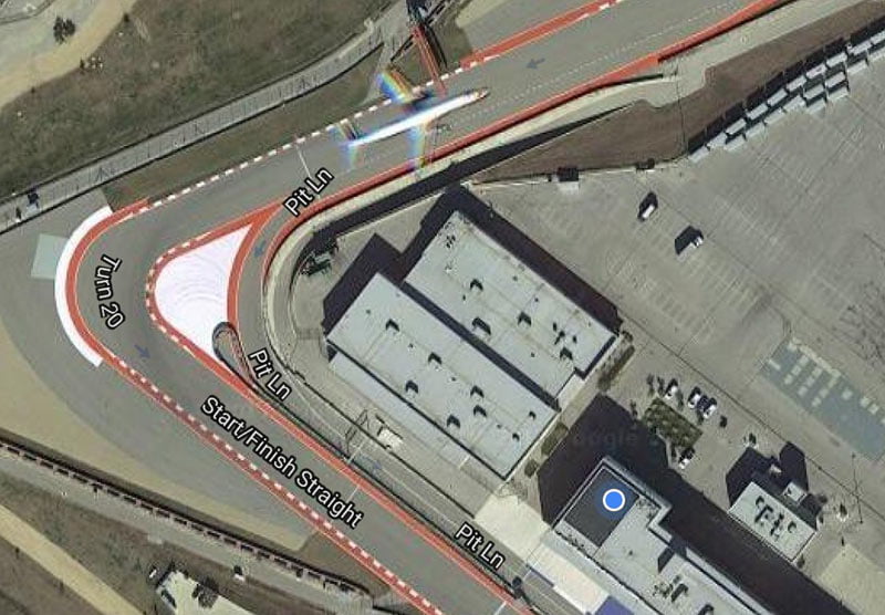 En fait, il s’agit évidemment d’une des incongruités offertes par le célèbre logiciel qui capture ses images depuis plusieurs satellites dans l’espace. Au moment où le circuit d’Austin a été photographié, un avion passait justement au-dessus, ceci expliquant cela…