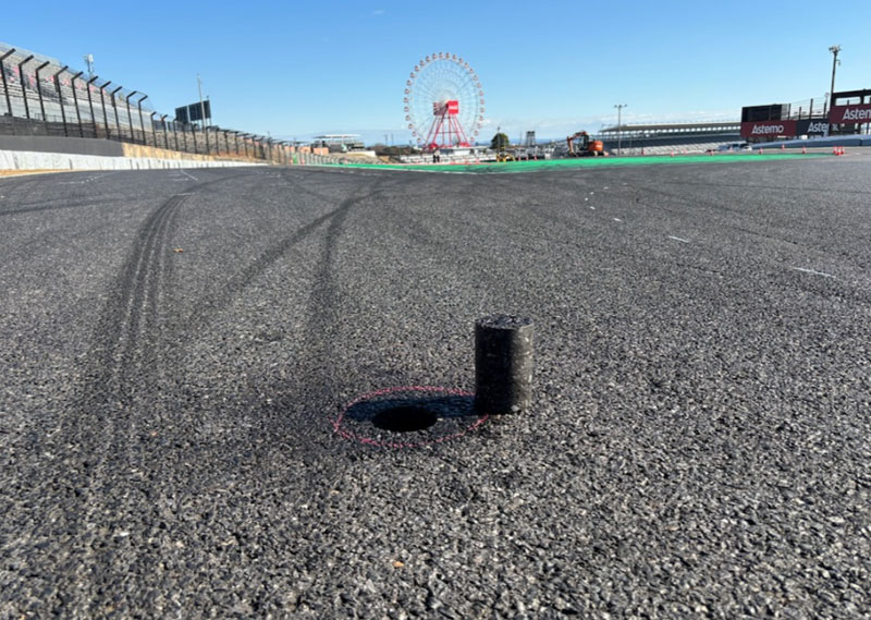 Des sections de l’asphalte original du circuit de Suzuka seront mises en vente. Ces pièces uniques sont extraites par carottage de la surface, donnant des noyaux cylindriques qui ont supporté le passage des monoplaces de Formule 1 et des motos des 8 Heures de Suzuka.