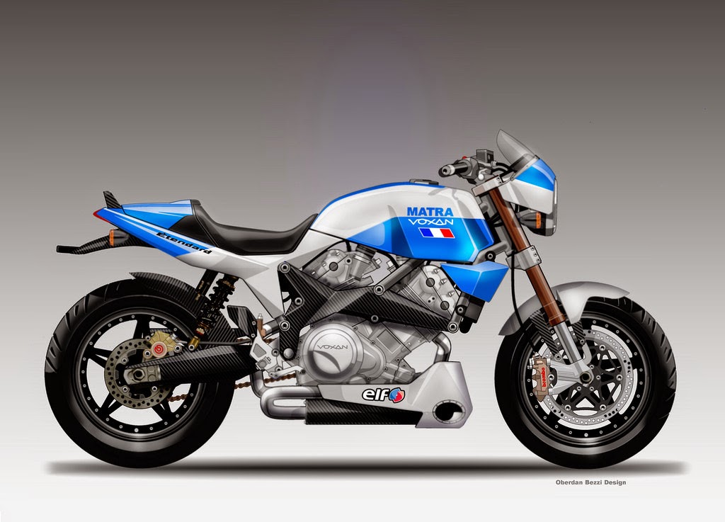 Elle serait née d’une collaboration entre la glorieuse marque MATRA (Mécanique Aviation TRaction), dépoussiérée pour l’occasion, qui était célèbre dans les années 70 pour ses voitures de course tant en Formule 1 que chez les Prototypes où elle remporta à plusieurs reprises les prestigieuses 24 Heures du Mans, et la marque Voxan, qui a brillé au début des années 2000 mais a fait faillite, faute d’un marché Français réceptif à son V2 à 72° de 1000cc, pourtant très compact, équilibré et coupleux, avec des machines ayant un design qui ne prend quasiment pas une ride.