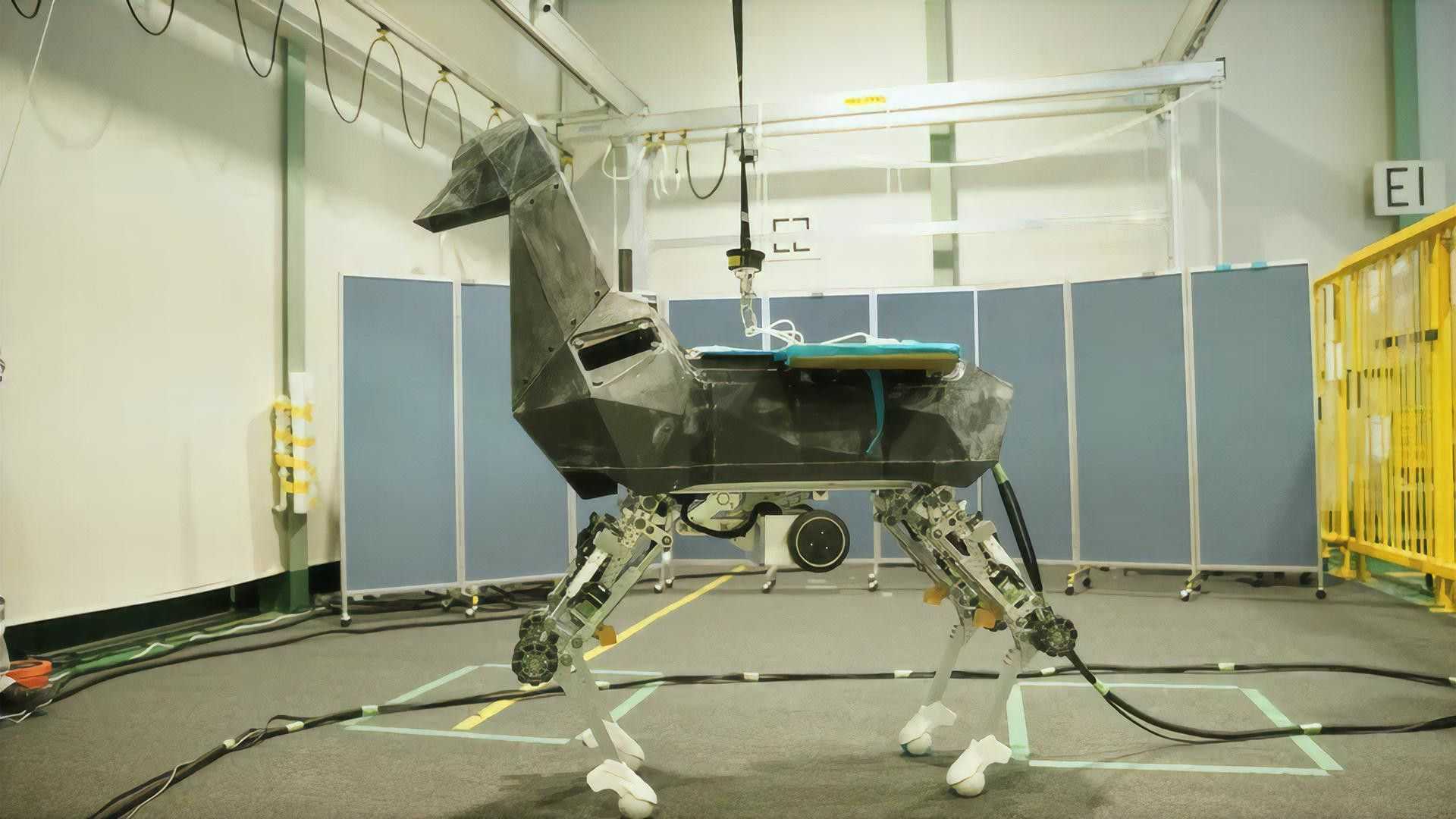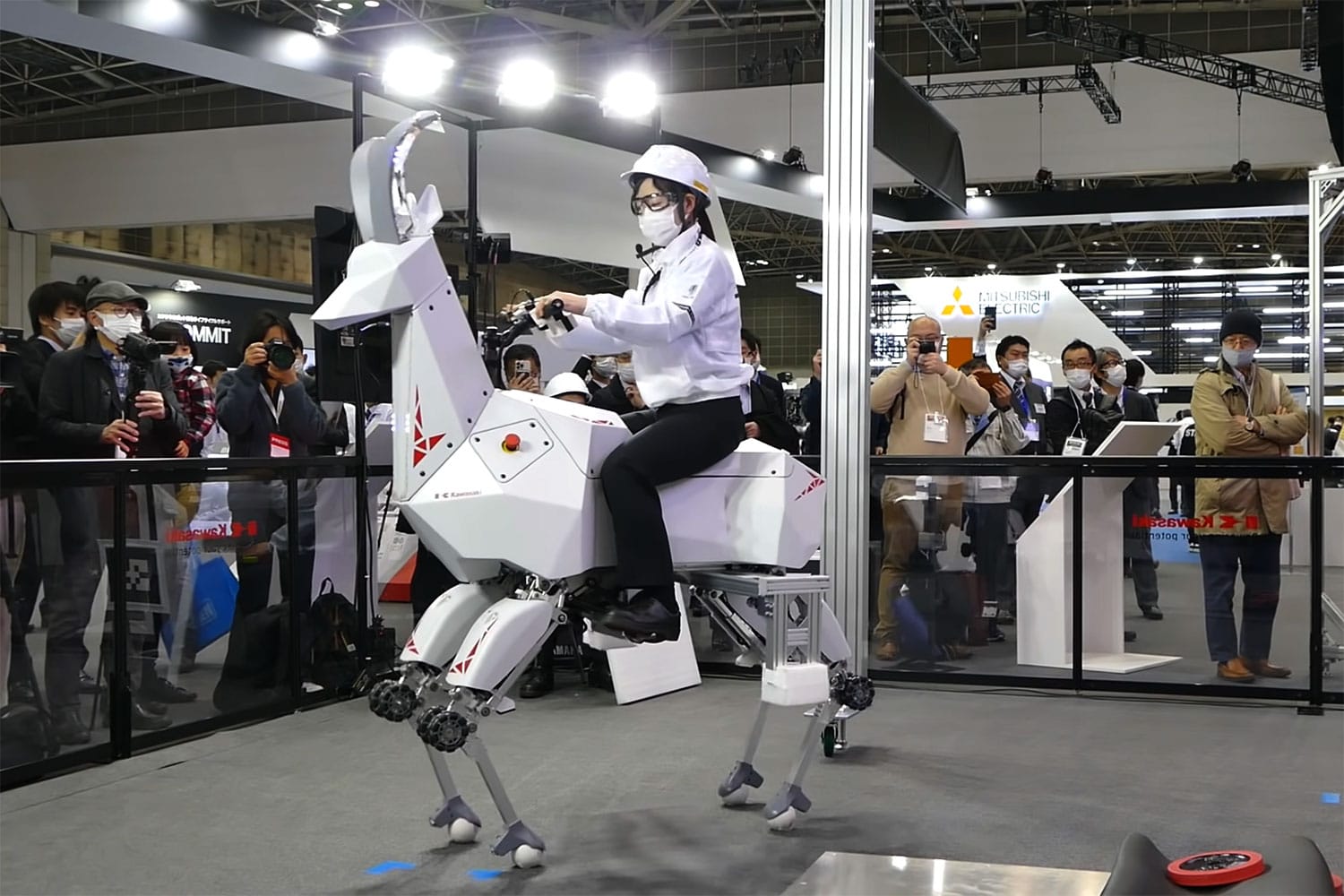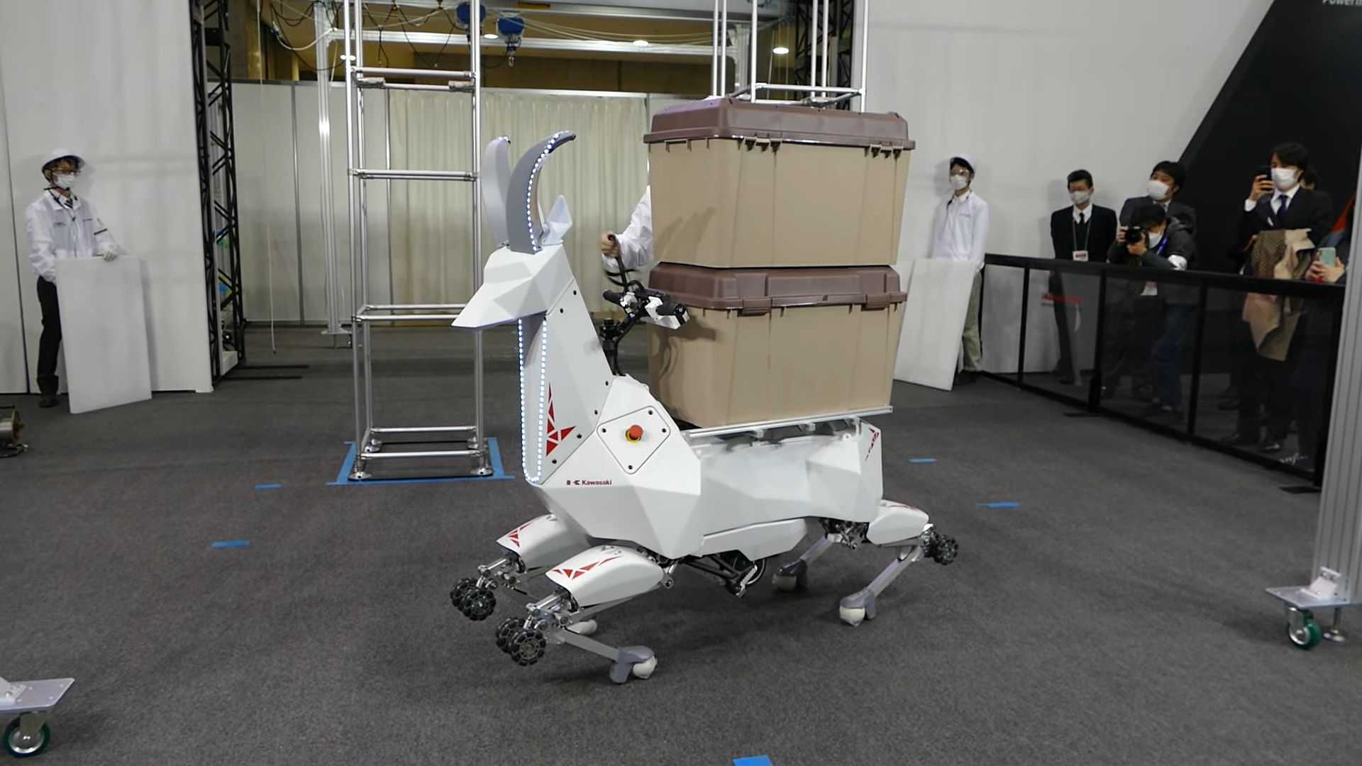 Kawasaki Robotics a dévoilé ce robot à cornes, étrange croisement entre un cheval et un chamois. Son nom : Bex, car ce serait finalement plutôt un bouquetin (Ibex en anglais). Dans la vidéo ci-dessous, on découvre que ses cornes s’allument et que ses pattes articulées peuvent monter et descendre, et surtout se transformer en roues… Le tout avec un siège et un guidon pour qu’un cavalier lui grimpe sur le dos. Eh oui, contrairement à Spot, Bex n’est pas uniquement autonome, et on peut donc l’utiliser comme monture.