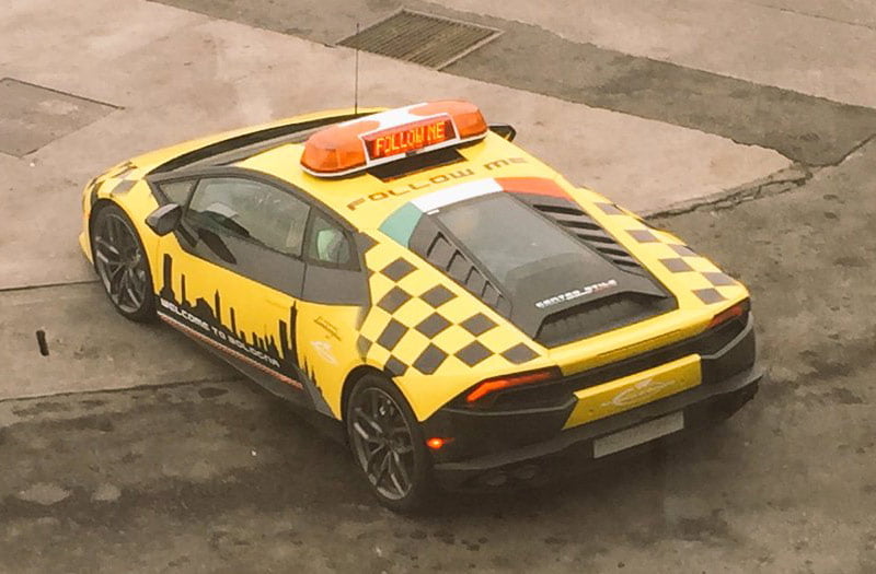 Aujourd’hui, Alex Hofmann, pilote essayeur MotoGP chez KTM nous fait découvrir que d’autres sont également bien lotis, comme ceux qui se servent de cette voiture « Follow me » sur l’aéroport de Bologne, situé à 130 kilomètres de Misano.