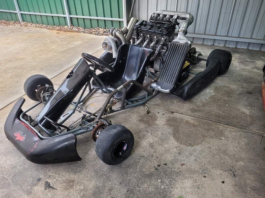Le youtubeur australien Ben Robertson, plus connu sous le pseudonyme de Snail TV, n’est pas étranger aux projets fous. Cette fois ci, il a créé un kart aux caractéristiques folles : son moteur Suzuki, prélevé sur une Suzuki Hayabusa et doté d’un turbocompresseur et de protoxyde d’azote, délivre plus de 400 chevaux !