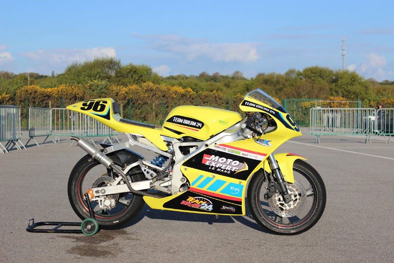La moto, une Yamaha 125 TZR préparée pour la piste et portant le numéro 96, défendra sa place en -25cv (la plus puissante des deux catégories).