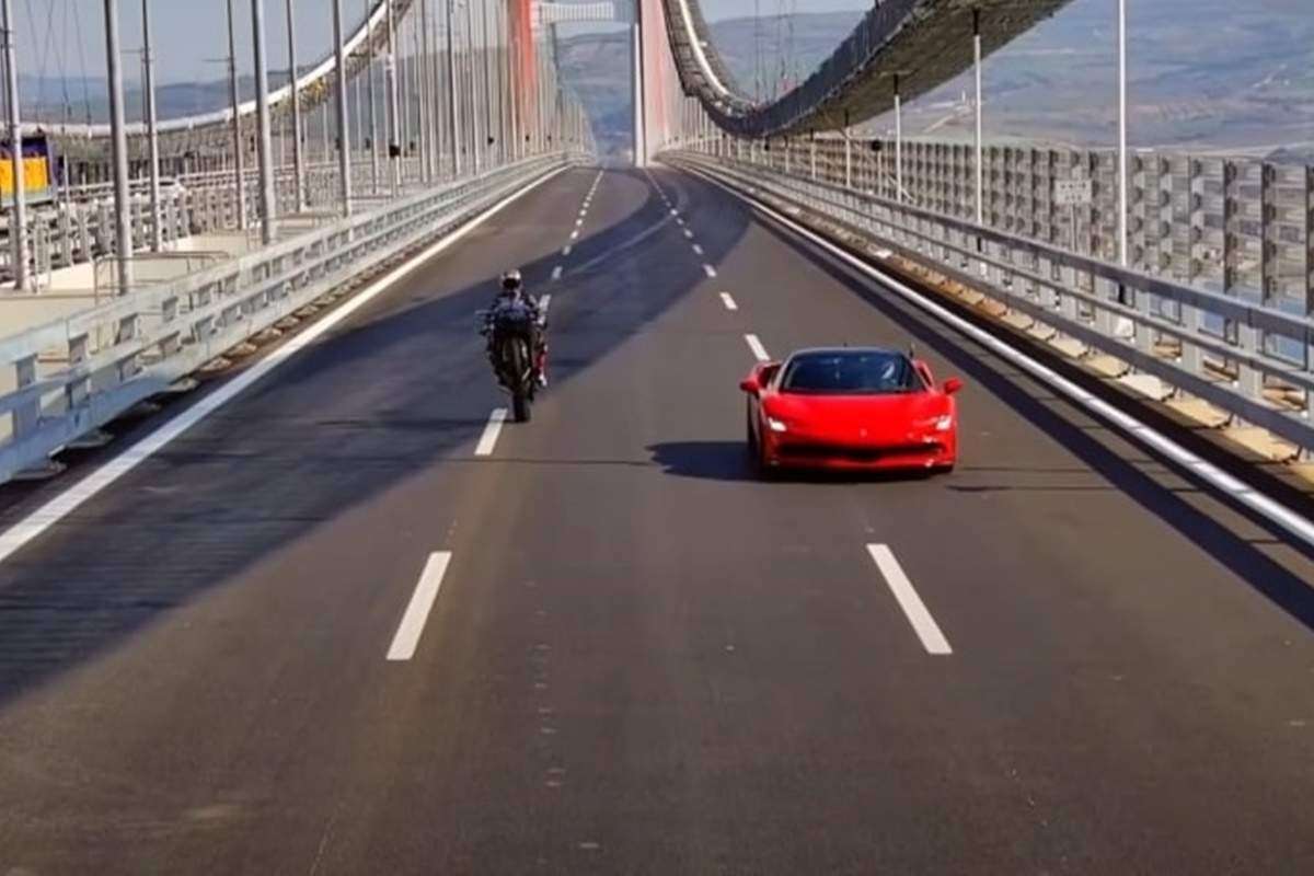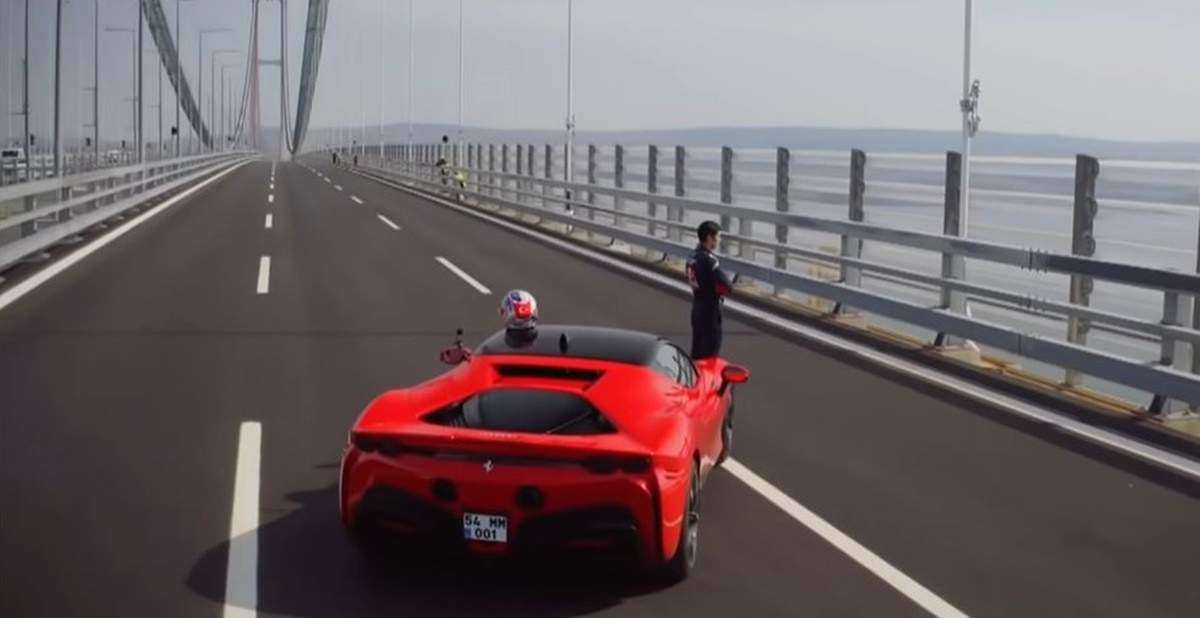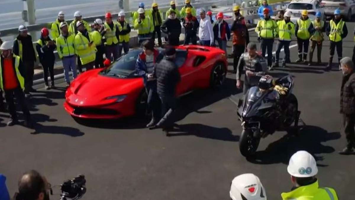 A la veille de l’inauguration de ce qui deviendra le plus long pont suspendu de la planète, le Canakkale 1915, qui mesure 2 023 m dans sa section principale, les deux pilotes les plus titrés de l’histoire de la Turquie, Kenan Sofuoglu et Toprak Razgatlioglu, s’affrontent dans une course en utilisant deux des véhicules les plus rapides de la planète : la Ferrari SF90 et la Kawasaki Ninja H2R.