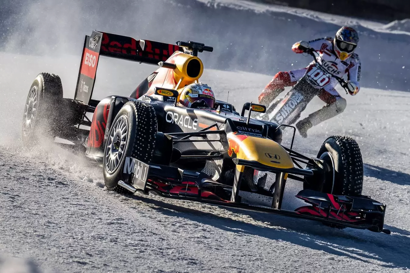 Comme beaucoup l’ont souligné, de nombreuses équipes placeraient une voiture de course aussi chère dans un coffre-fort ou un musée, pour la garder en lieu sûr. Au lieu de cela, Red Bull a décidé de l’équiper de Pirelli cloutés et de faire des courses sur glace à l’aéroport de Zell Am See en Autriche, et d’inviter Franky Zorn à montrer à Max Verstappen comment il se débrouille sur deux roues.