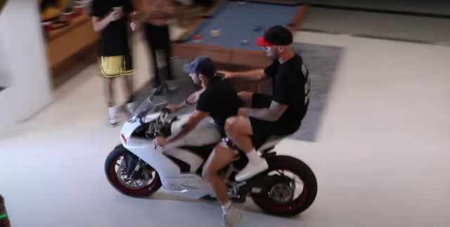 Lors d’une fête chez David Dobrik, l’un des participants à la fête, Ilya Fedorovich, est monté sur une Panigale blanche, avec un passager, pour une balade à l’intérieur d’une villa. Cette manœuvre stupide aurait pu suffire, mais le jeune homme a fait encore plus, étant donné qu’ayant atteint l’extérieur de la maison, il a littéralement plongé dans la piscine avec la belle Italienne. Une fois plongée dans l’eau, David Dobrik fait alors savoir à son compagnon « Je ne filmais pas ! » pour rajouter un peu de drama à l’action, ou tout simplement faire le buzz…