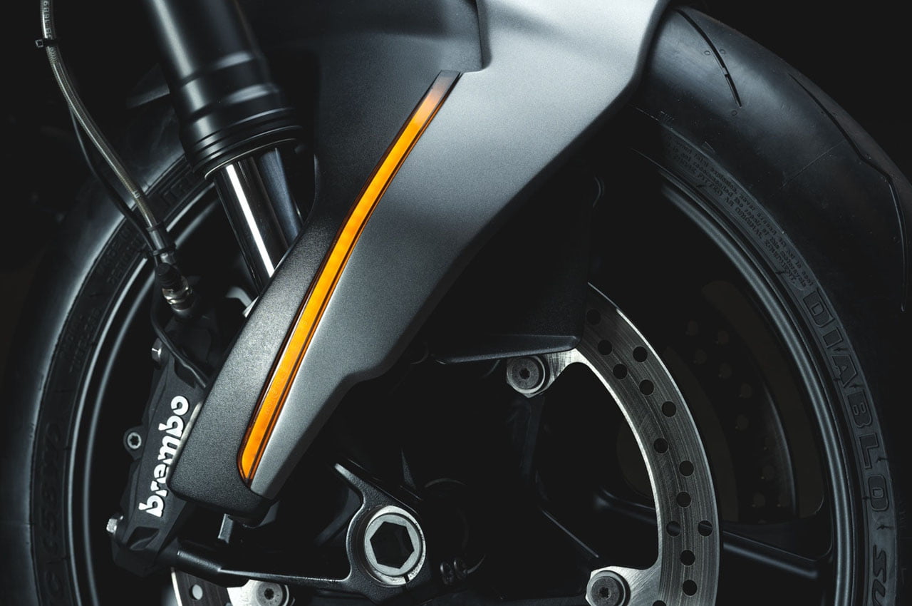 Alors que le carénage métallique attire l’attention, un garde-boue avant et une tête de fourche intégrant les clignotants complètent la monocoque. Compte tenu de la conception de la colonne de direction, Vagabund a également dû fabriquer un boîtier en aluminium pour le réservoir d’essence, l’électronique et le châssis personnalisé.