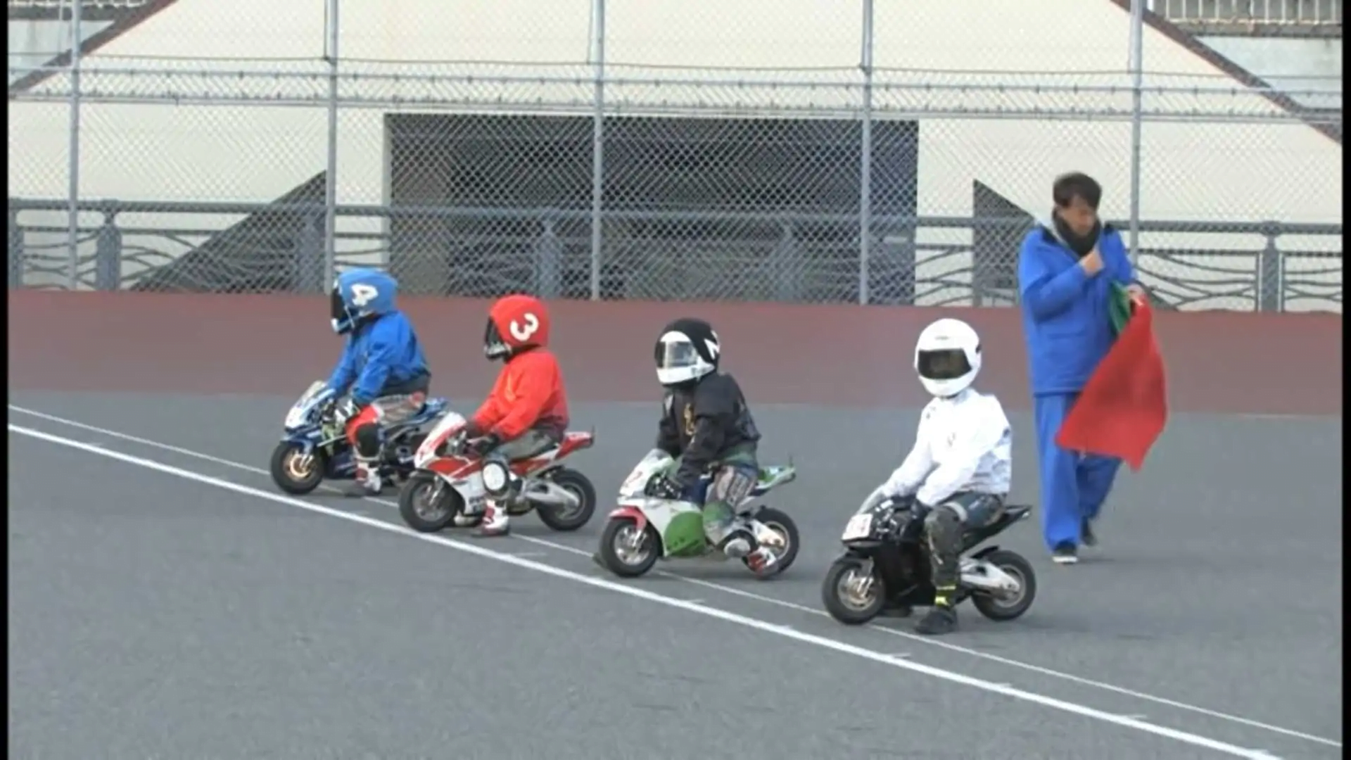 A l’instar des épreuves de course automobile, il y a huit concurrents en piste ici, sur le circuit de Kawaguchi. La différence la plus immédiate en les regardant concourir est que clairement, les pilotes doivent faire beaucoup de yoga avant de monter sur leurs machines, car ils ont les genoux au niveau des oreilles.