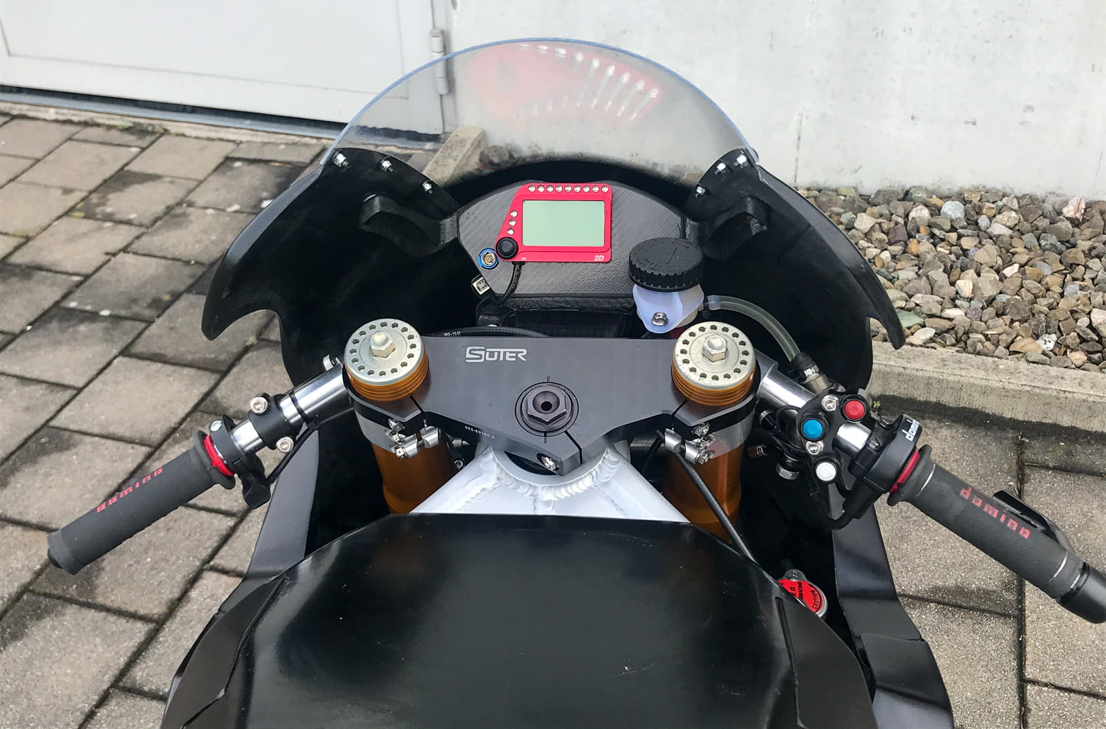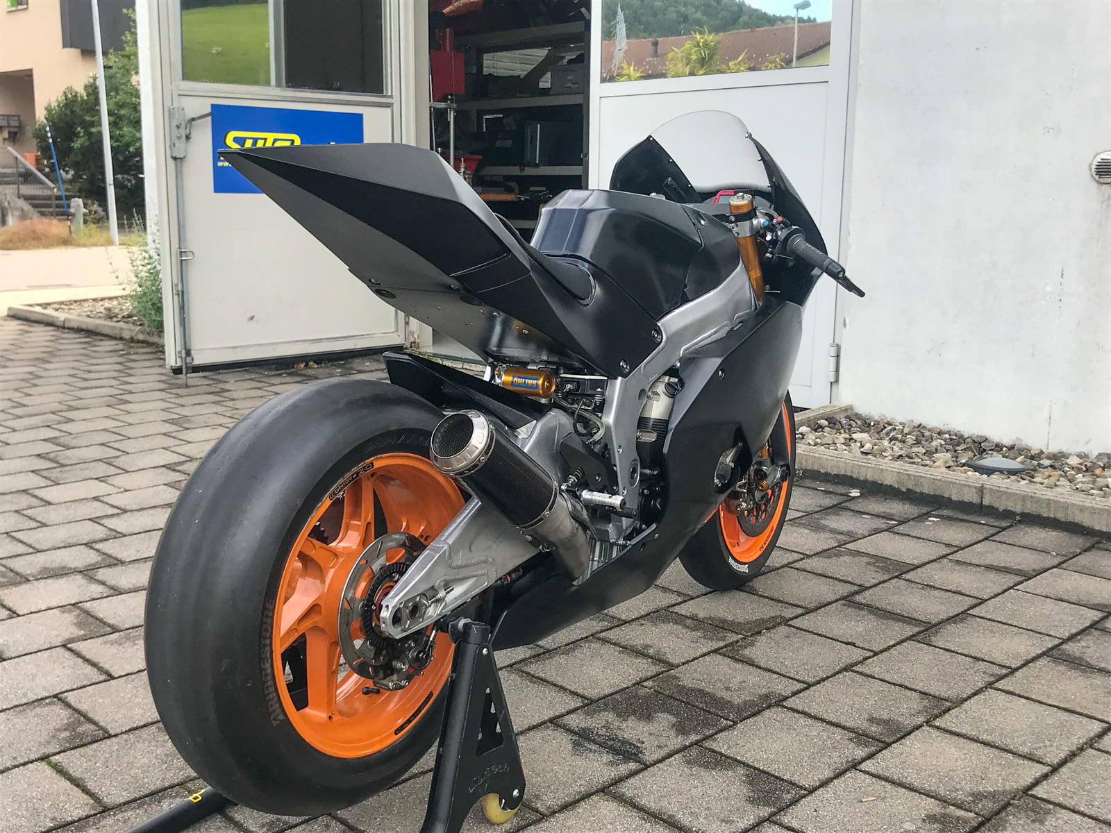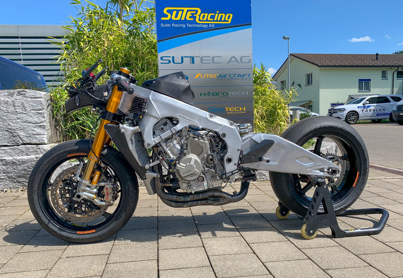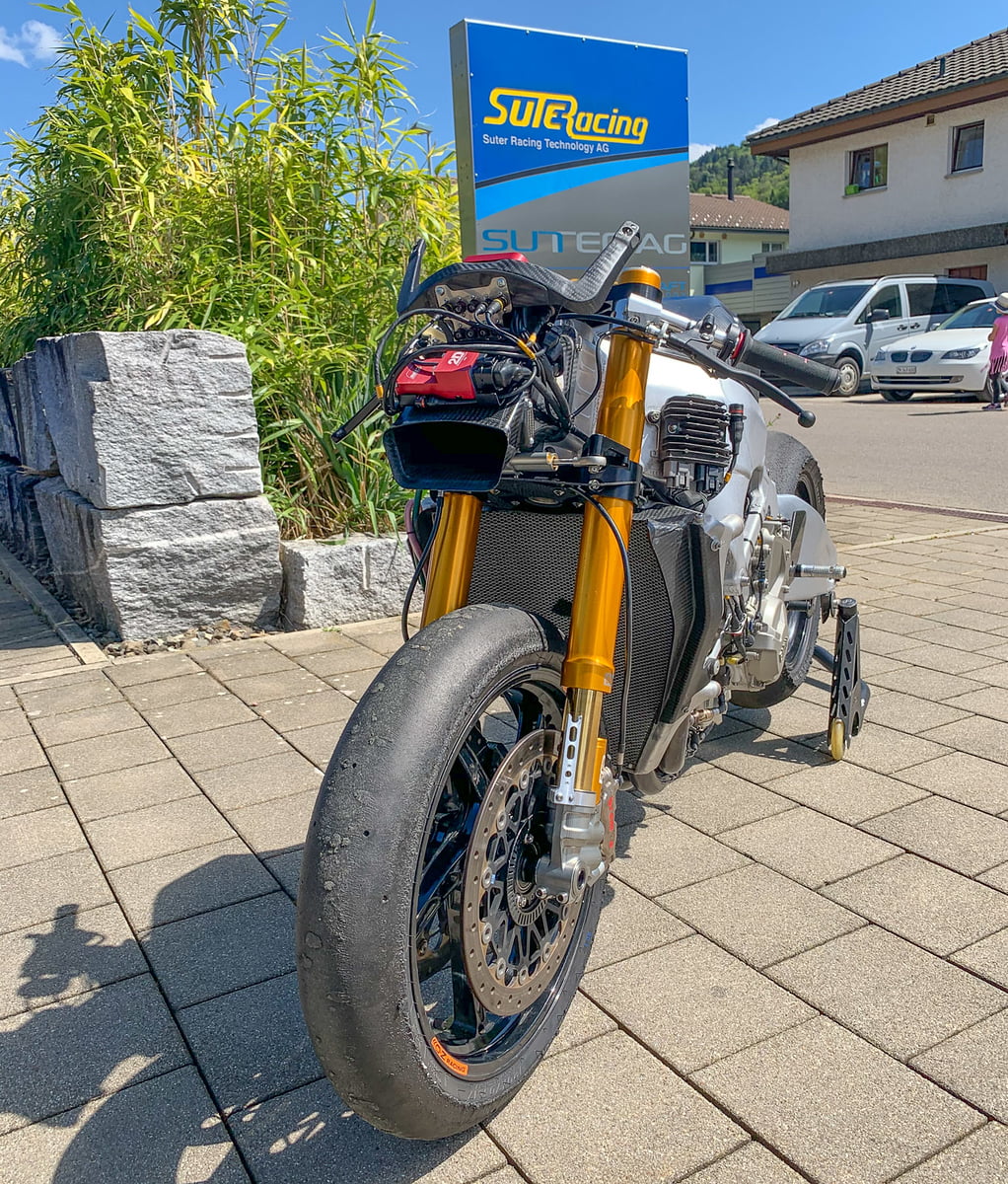 Ensuite SRT l’a principalement utilisé à des fins de présentation et ce prototype n’a pas été utilisé depuis 2018. Cependant, Suter a restauré la machine en 2020 pour répondre aux spécifications actuelles. Maintenant, un moteur de BMW S1000RR est installé dans la machine avec un nouvel ECU Bosch MS5.0. La fourche et l’amortisseur arrière Ohlins TTX sont les derniers cris de la marque Suédoise, quant aux étriers monoblocs Brembo, c’est le nec plus ultra en termes de freinage.