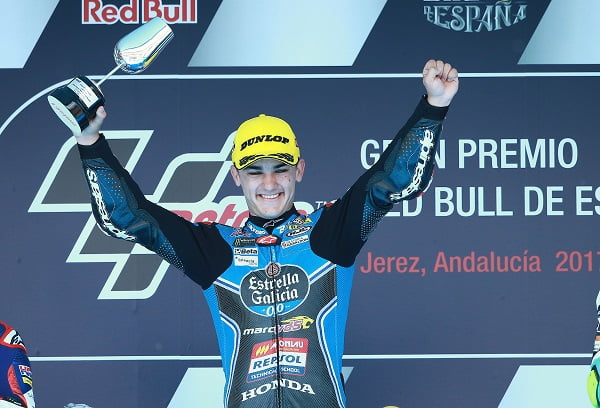 Lors de sa première saison l’an dernier à 17 ans, Aron avait impressionné les observateurs avec une quatrième place au Mans et un podium à Phillip Island. Il terminait six fois parmi les huit premiers. Barré actuellement par Joan Mir, qui partira en Moto2 l’an prochain chez Marc VDS, et par l’éternel redoublant Romano Fenati, Canet s’est révélé depuis le début de l’année avec deux victoires à Jerez et Assen, et deux pole positions à Austin et en Allemagne.
