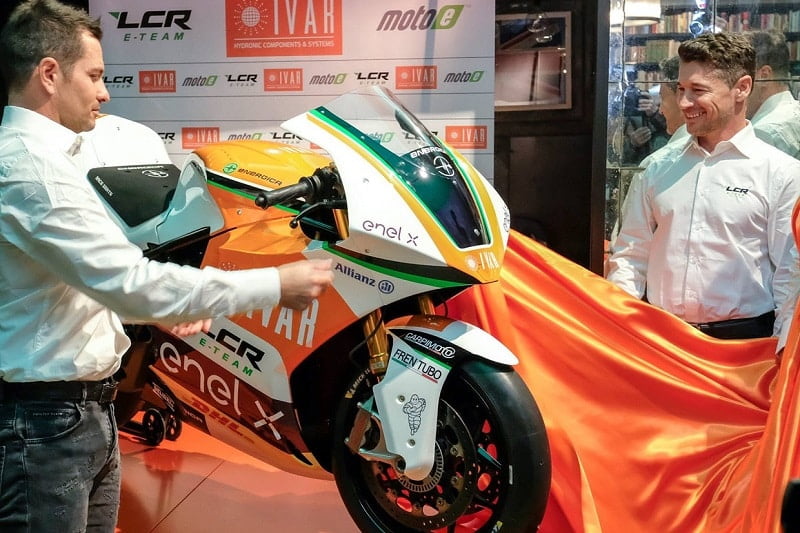 Photo ci-dessus : Randy lors de la présentation de sa MotoE de l’équipe LCR de Lucio Cecchinello (à droite) ce 28 février