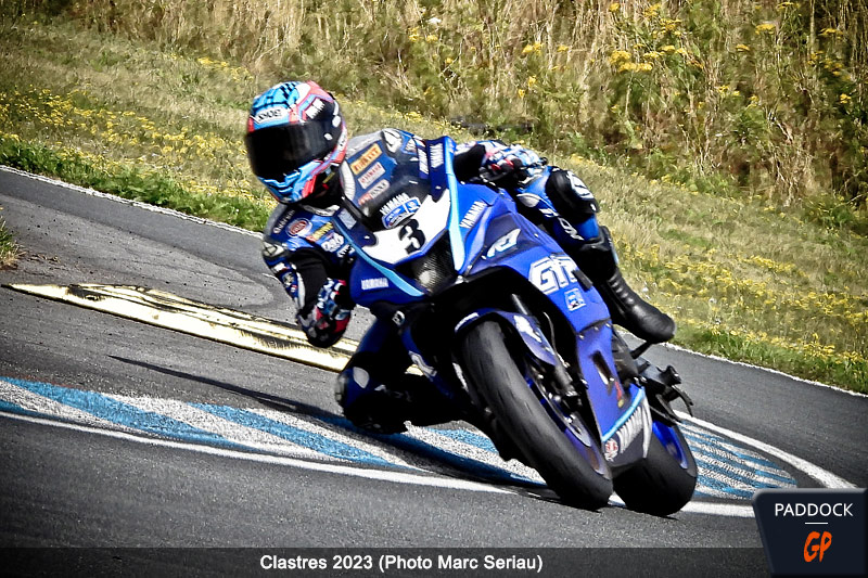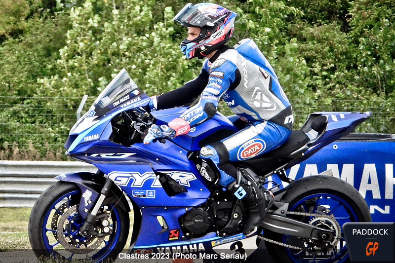 Comme Gautier Paulin ou Milko Potisek, Maxime Renaux, que l’on ne présente plus en motocross, était présent sur le circuit de Clastres pour coacher la partie tout-terrain. Sauf qu’avoir une Yamaha R7 et une piste de vitesse à sa disposition, ça tente, même si on s’est sérieusement blessé au pied deux mois auparavant.