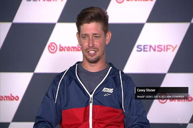 Près de dix ans après sa retraite du MotoGP et plus de trois années après sa dernière apparition dans le paddock en 2018, Casey Stoner était de passage ce weekend à l’occasion du Grand Prix d’Algarve, sur le circuit de Portimão. L’occasion pour le pilote australien d’accorder une conférence de presse exhaustive.