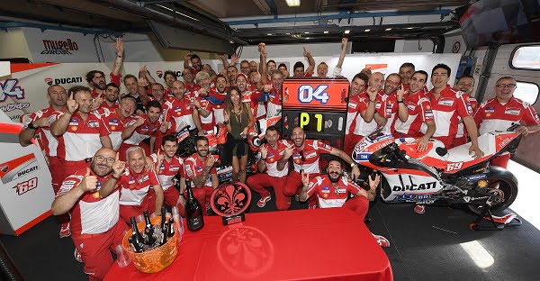 Après une nuit horrible à la suite d’une intoxication alimentaire, quand Dovizioso se dirigea vers son stand en ce dimanche matin, il était bien loin de se douter qu’il deviendrait quelques heures plus tard le premier pilote transalpin à remporter le Grand Prix d’Italie sur une Ducati. Et pourtant il y est parvenu à force de courage, ainsi que grâce à son talent et une gestion de course parfaite. La dernière victoire italienne sur une moto locale dans leur GP national avait été obtenue par Gianfranco Bonera sur MV Agusta en 1974 au Grand Prix d’Imola.