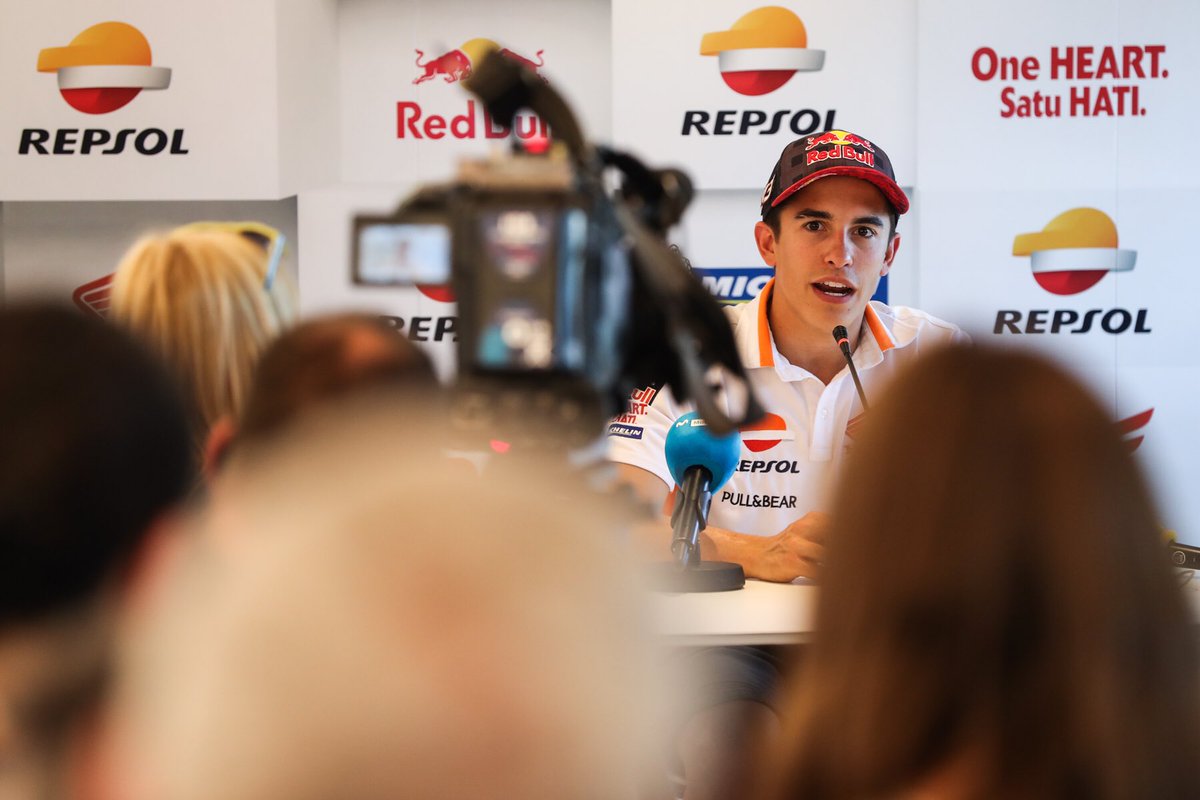 Lors de la conférence de presse de Marc Márquez dans l’hospitalité du team Repsol Honda, ce dernier a dû répondre aux questions des journalistes et, évidemment, après la chute de Valentino Rossi, l’un d’entre eux a demandé si faire du motocross n’était pas trop dangereux pour les pilotes MotoGP…
