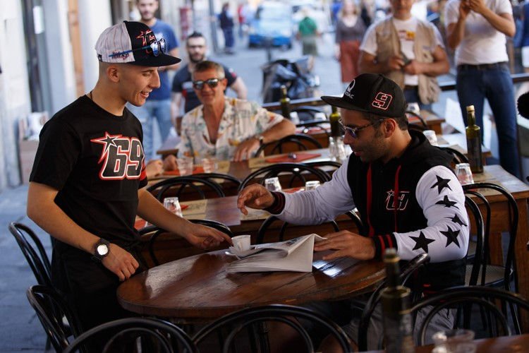 Sinon, Andrea Migno s’est fait un plaisir de servir un expresso à un Danilo Petrucci dont on ne sait s’il a laissé un pourboire. Ce qui est certain en, revanche, c’est que les pilotes ont revêtu des vêtements rappelant un Nicky Hayden qui nous manquera pour toujours.