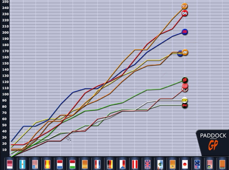 Pas mal, mais il y a fort à parier que le tenant du titre avait plutôt un œil sur les points du classement général à l’arrivée. DesmoDovi le recolle en effet à 11 points tandis que Viñales lâche prise en étant repoussé à 41 longueurs.