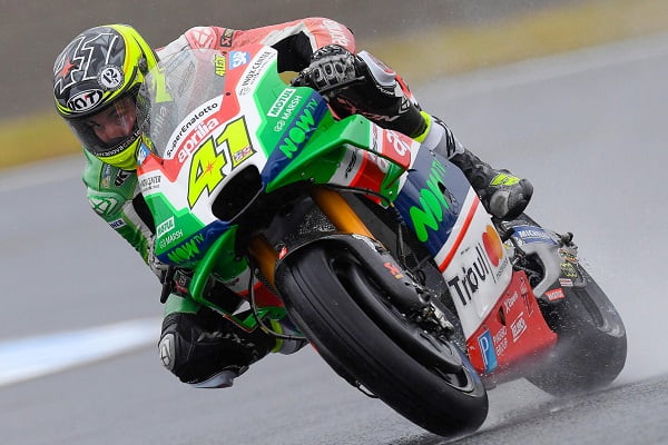 Espargaro a parfaitement joué sa carte sur le mouillé, obtenant un incroyable deuxième chrono pendant la première séance d’essais libres en 1’56.2, à 0.8 du leader Marc Marquez.