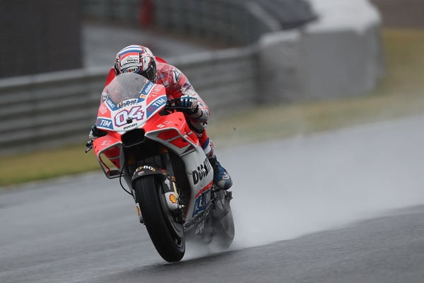 Pour Andrea Dovizioso, « C’était vraiment bien parce que nous ne nous attendions pas à être compétitifs sur le mouillé. Sur les deux derniers titres où nous avons roulé sur le mouillé, je ne me sentais pas aussi bien.