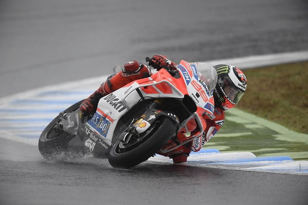 Dans la première séance d’essais libres, où a eu lieu cet incident, Lorenzo réalisait le quatrième temps sur le mouillé en 1’56.6, derrière Marc Marquez, Aleix Espargaro et Scott Redding. Il précédait alors son coéquipier Andrea Dovizioso et Johann Zarco.