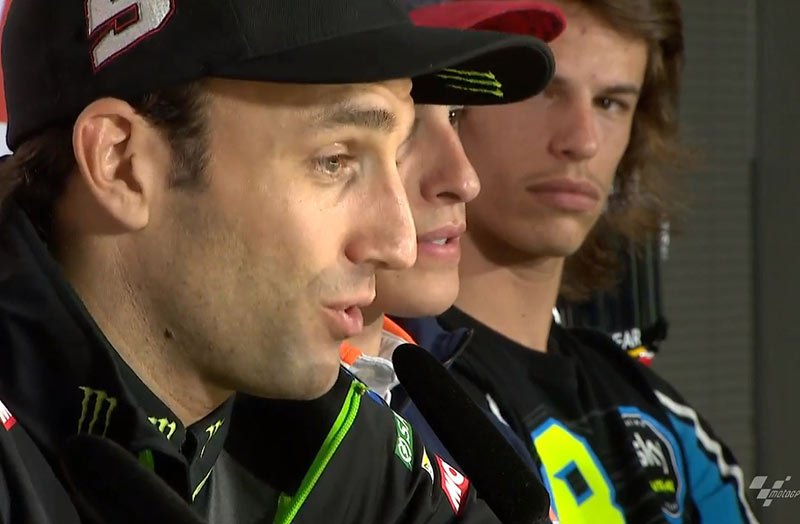 Invité à cette conférence de presse post-qualification du Grand Prix du Japon pour y avoir obtenu la pole position, Johann Zarco a répondu avec un mélange d’émotion et d’humour aux questions des journalistes, en présence de Danilo Petrucci, Marc Márquez, Takaaki Nakagami et Nicolo Bulega.