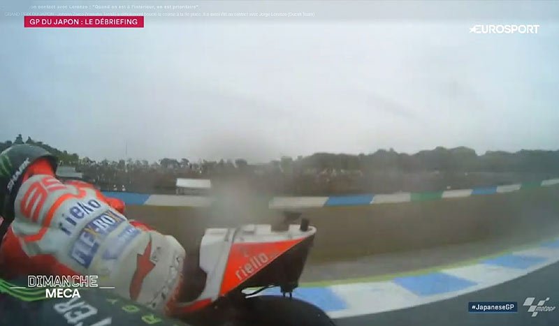 Au cours de la première partie du Grand Prix du Japon, un incident mineur a impliqué Jorge Lorenzo et Johann Zarco, lorsque ce dernier a doublé le pilote espagnol au virage #9.