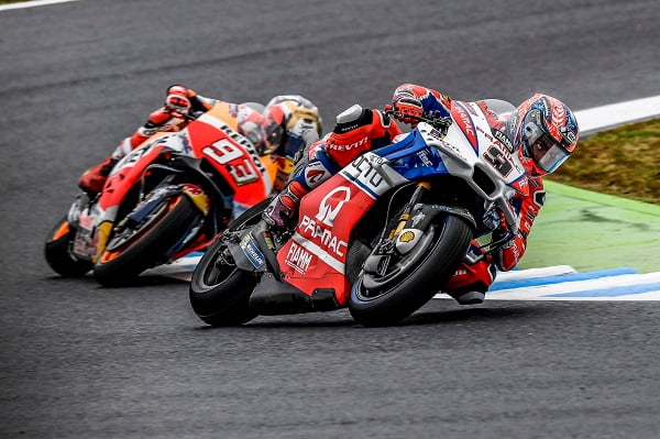 Excellent dès le départ grâce à son choix d’un Michelin pluie extra-tendre à l’arrière, Petrucci a mené de main de maître la première moitié du Grand Prix. Très à l’aise sur le mouillé, il a réussi à s’imposer en début de course face à Marc Marquez et Andrea Dovizioso, avant que son pneu s’avère un peu moins performant, mais lui permettant néanmoins de monter sur la troisième marche du podium.
