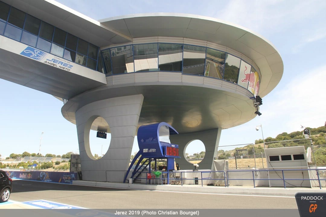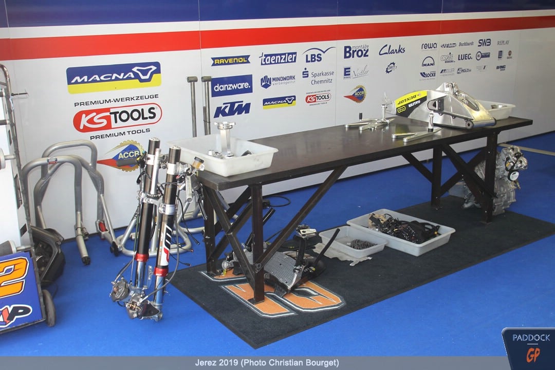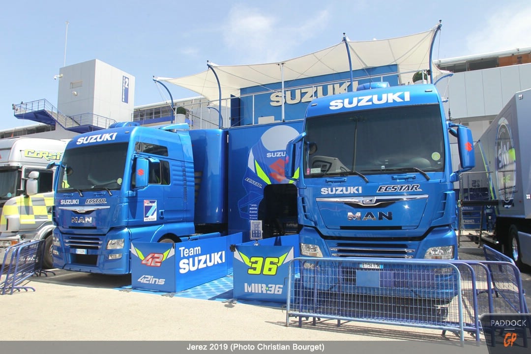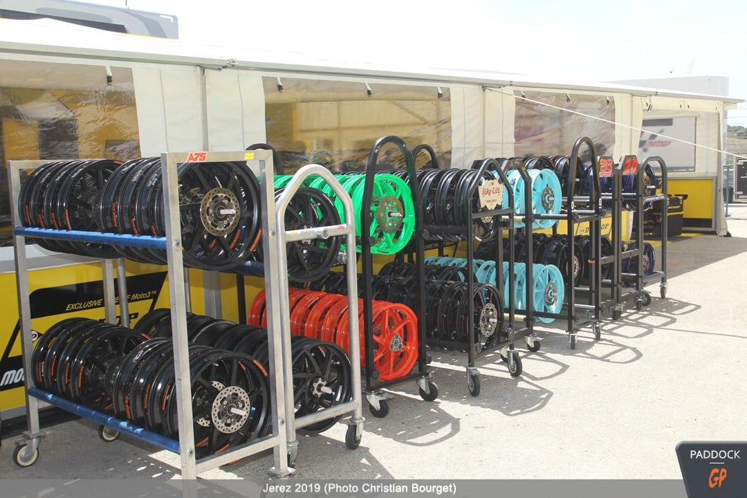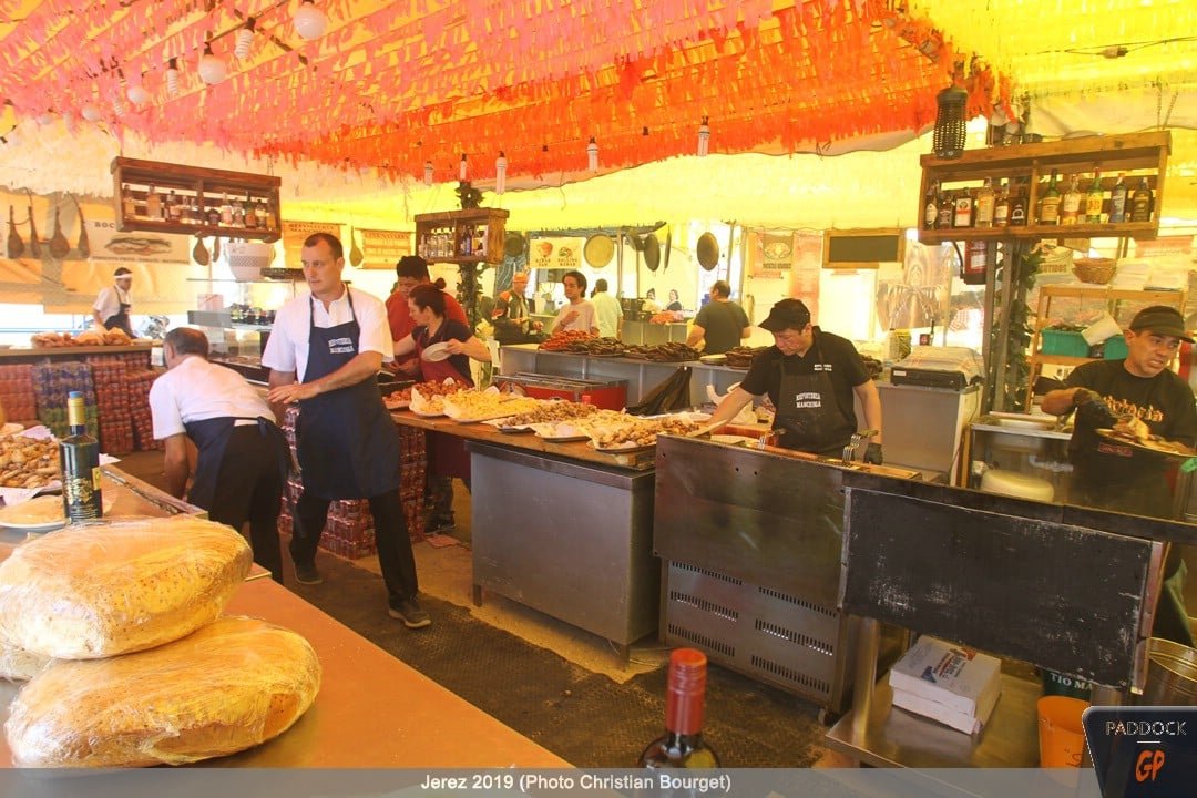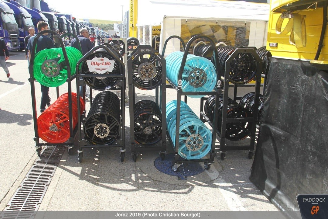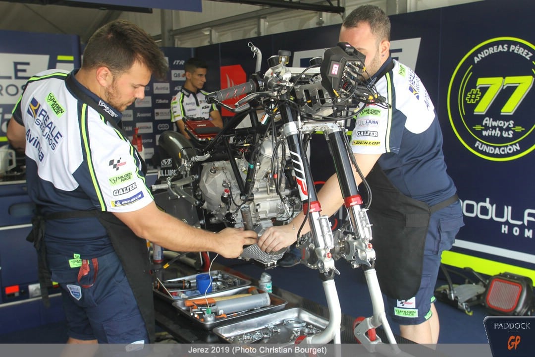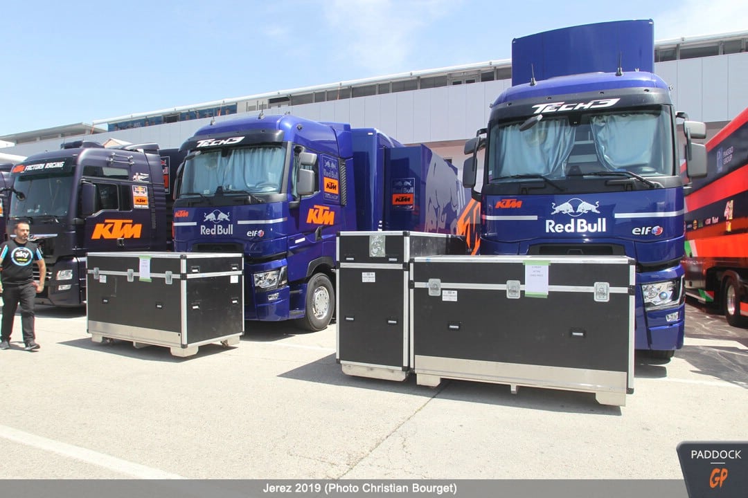 Le jeudi, le paddock est quasiment finalisé pendant que les pilotes s’adressent à la presse et que les mécaniciens démontent et remontent les motos…