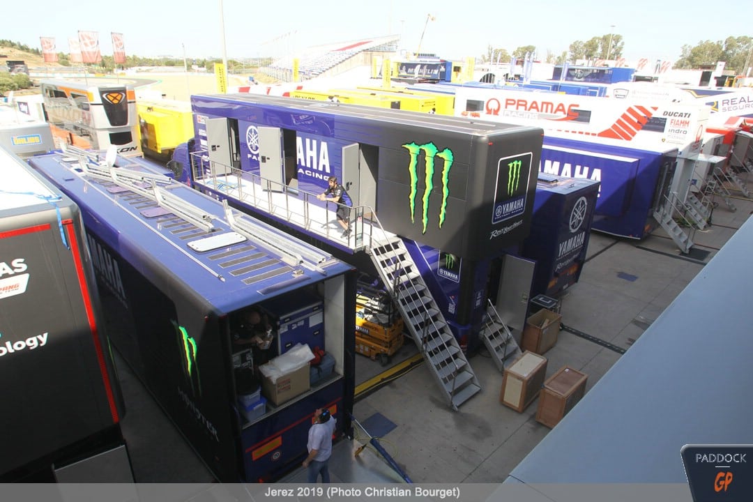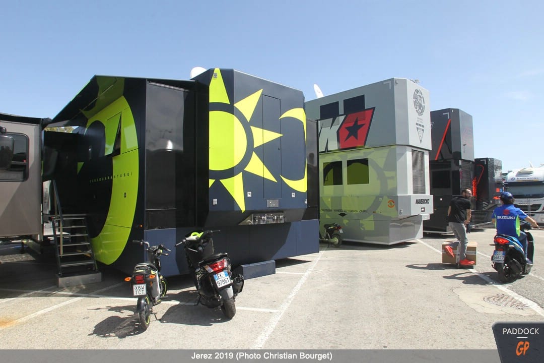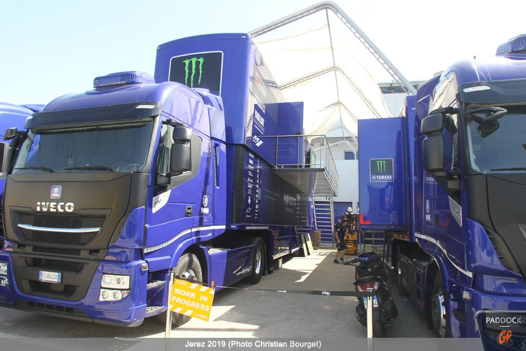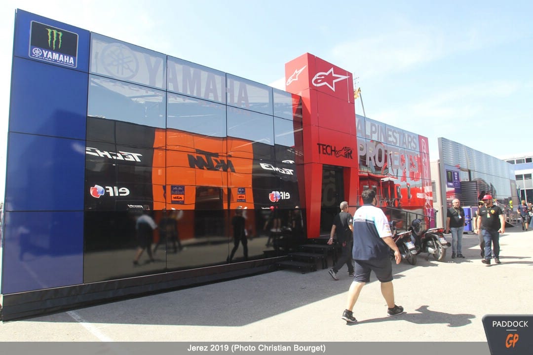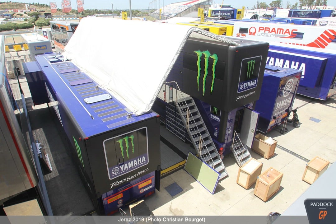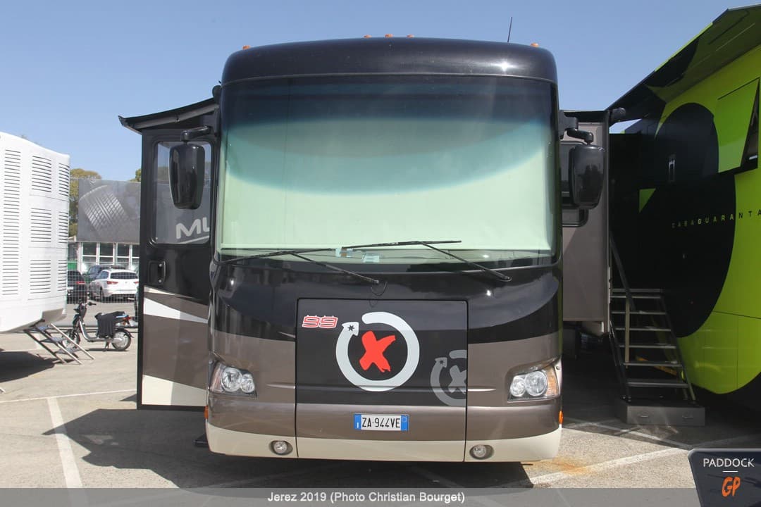 Une autre nouveauté, par rapport à celles déjà citées, les nouvelles couleurs du mobile home de Jorge Lorenzo qui a troqué son rouge Ducati pour des tons plus discrets.