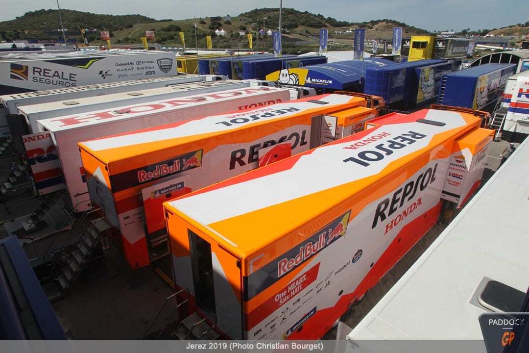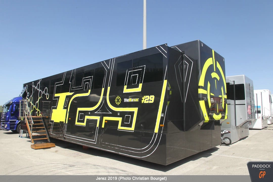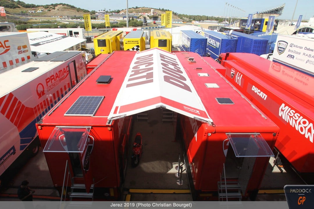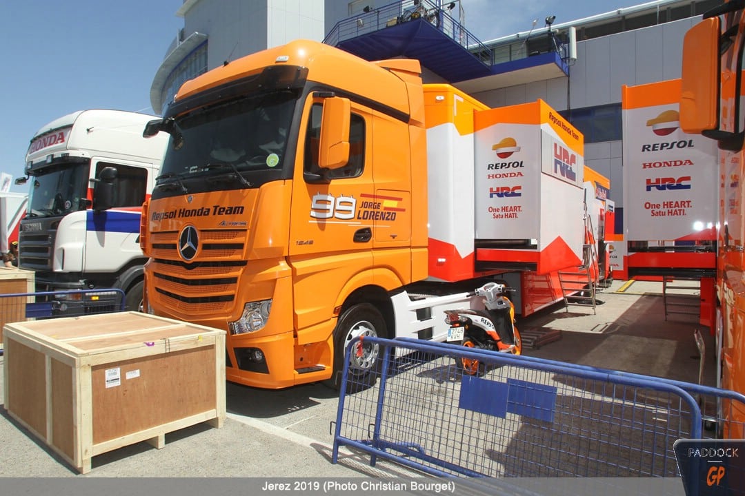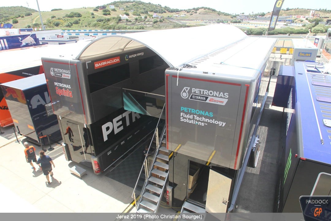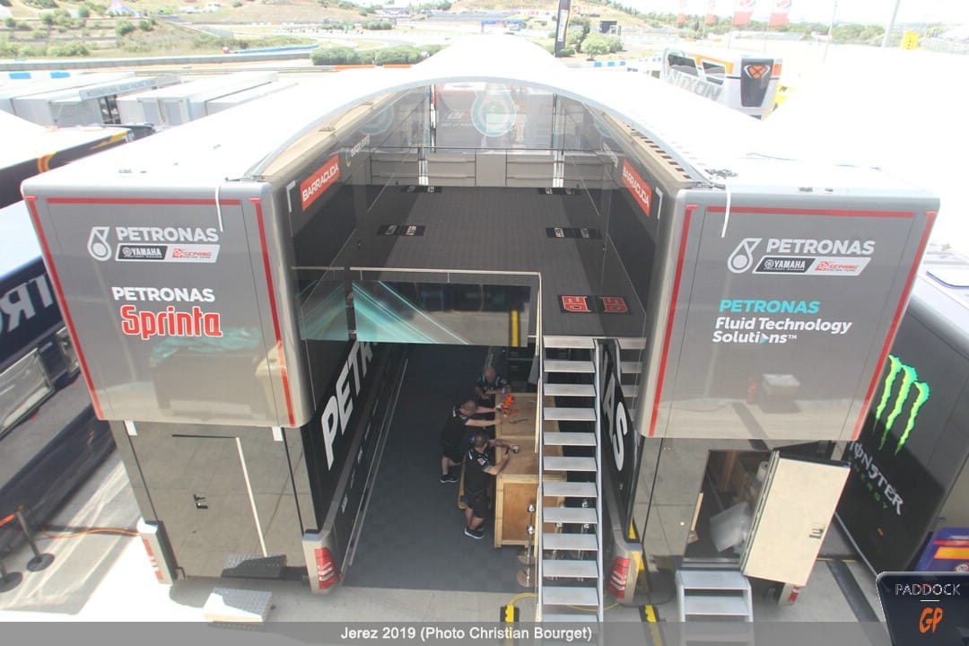 Une autre nouveauté, par rapport à celles déjà citées, les nouvelles couleurs du mobile home de Jorge Lorenzo qui a troqué son rouge Ducati pour des tons plus discrets.