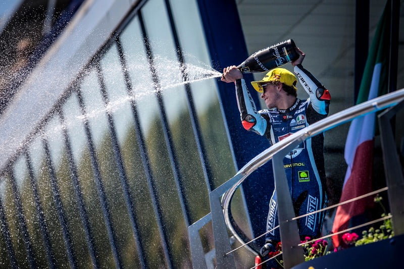 Marco Bezzecchi a su prendre son temps ce week-end, en démarrant avec le onzième temps aux temps combinés des essais libres, avant de se qualifier cinquième. Suite à un bon départ et une bonne gestion de la course, il est allé chercher son troisième podium de la saison : « Nous avons vraiment fait une bonne course. Nous avons attaqué fort dès le départ afin de pouvoir rouler devant. J’ai mené un moment et ensuite j’ai essayé d’économiser mes pneus pour les derniers tours. J’ai perdu des places mais suis resté dans le top 5. Peu avant la fin, Arón Canet a commis une erreur et fait tomber plusieurs pilotes. Heureusement, j’ai réussi à l’éviter et ai fait une super fin de course avec Philipp Öttl. J’ai essayé de l’attaquer, mais mon pneu avant était à la limite. Je suis très heureux de cette seconde place et de la première au Championnat du Monde. Merci à tous ! »