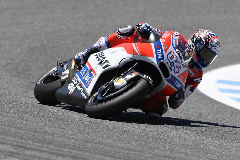 Andrea Dovizioso est un garçon posé, calme et lucide. Il arrive en tête du championnat du monde à Jerez avec 1 point d’avance sur Marc Marquez, mais il sait très bien qu’il ne doit ce privilège qu’à un résultat blanc de ce dernier.