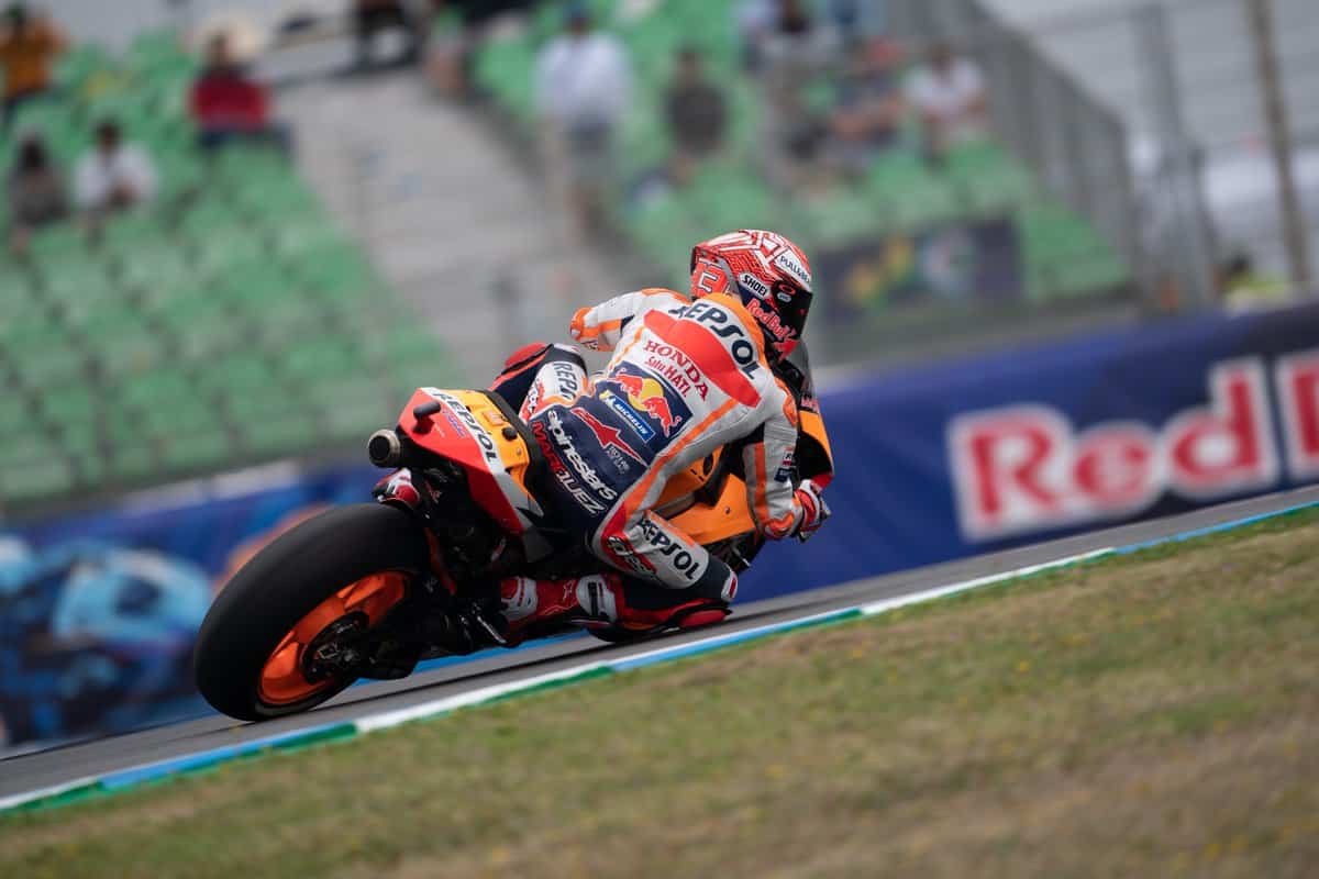 Pendant ce temps, Marc Márquez réalise 1’37.766, en emmenant avec lui Francesco Bagnaia.