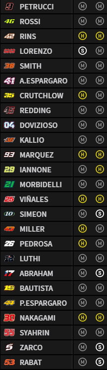 Si Marc Márquez, Cal Crutchlow, Andrea Iannone, Johann Zarco, Jorge Lorenzo, Jack Miller, Valentino Rossi, Dani Pedrosa, Danilo Petrucci et Alex Rins, qualifiés directement pour la Q2, pourront se concentrer uniquement sur la mise au point de leur moto et leur rythme en configuration de course, Andrea Dovizioso, Maverick Vinales et pourquoi pas Aleix Espargaro auront la tâche difficile de viser également un repêchage en Q1.