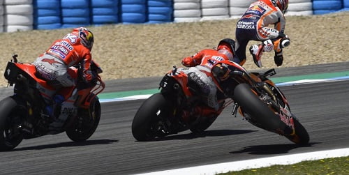 Chez Ducati, à Jerez, il s’est exactement passé ce qu’il fallait absolument éviter. Avec une répétition qui pose question, même si les circonstances sont différentes : à chaque fois que Lorenzo et Dovizioso sont en confrontation directe, et cela n’est arrivée qu’à Valence en 2017 et ce dimanche à Jerez, aucun ne voit l’arrivée. A Valence, le titre était en jeu pour Dovizioso et les consignes passées à Lorenzo, mais ce dernier a résisté avant de chuter. Son équipier a suivi ensuite avec un potentiel pneu atteint par la lutte fratricide. A Jerez, Lorenzo a joué sa carte en bloquant le leader du championnat et on connaît la suite…