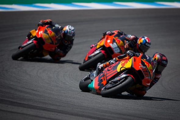 En arrivant à Jerez, les hommes de KTM avaient annoncé qu’ils changeraient de stratégie dans la gestion de leur meeting. Ils se consacreraient à présent à la préparation des qualifications dès un vendredi jusque-là transformé en test grandeur nature pour de nouvelles pièces. Un changement qui a d’abord fonctionné avec un premier jour en Espagne où Pol Espargaró a brillé. Puis il est progressivement rentré dans le rang. Au bilan, c’est le pilote test invité Mika Kallio qui a ramené le meilleur résultat des trois RC16 en lice !