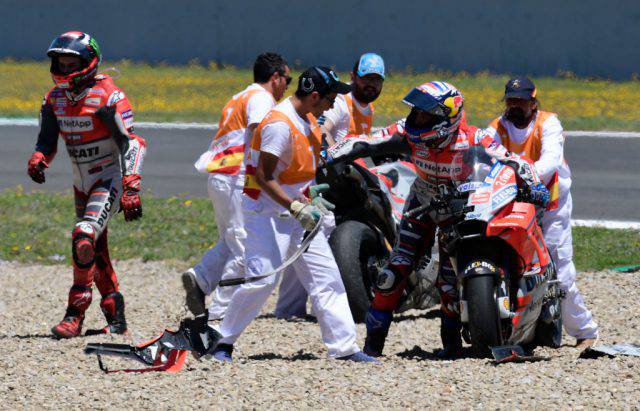 Et pourtant, l’Italien a tout essayé pour rejoindre la course espagnole pour tenter de marquer des points. Jusqu’à repartir avec la Ducati frappée du 99 ! La preuve avec ces images. L’émotion ou tentative désespérée ?